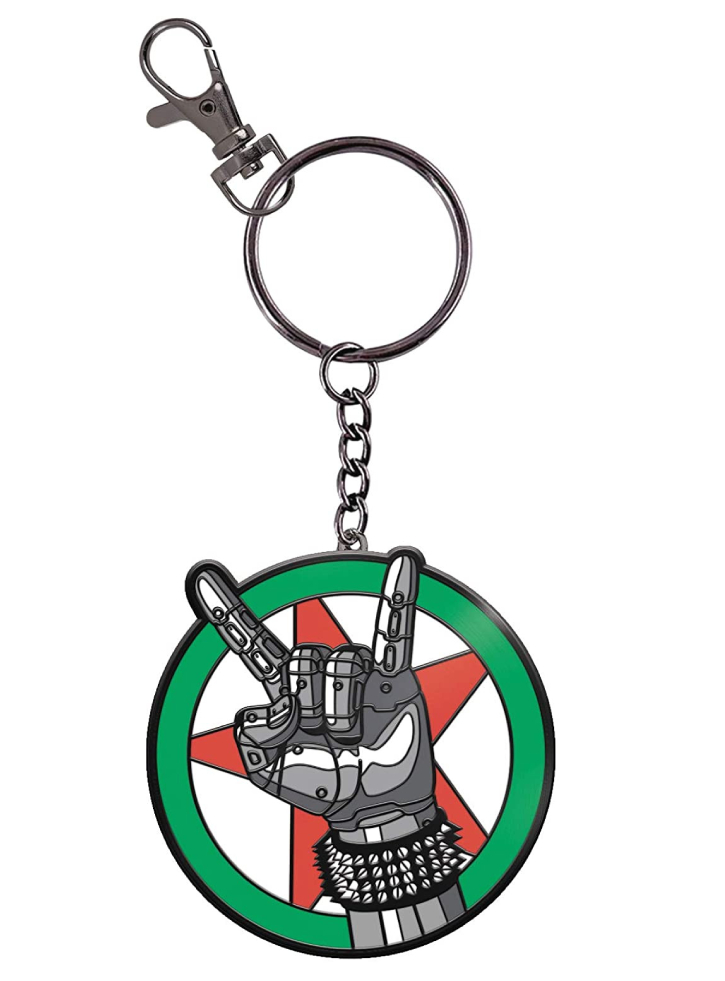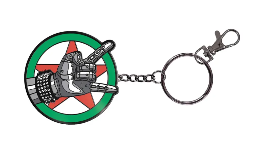 Acest breloc de chei ilustrează Cyberpunk 2077 Silverhand si este alcatuit din această emblemă din email și metal cu inel atașat.