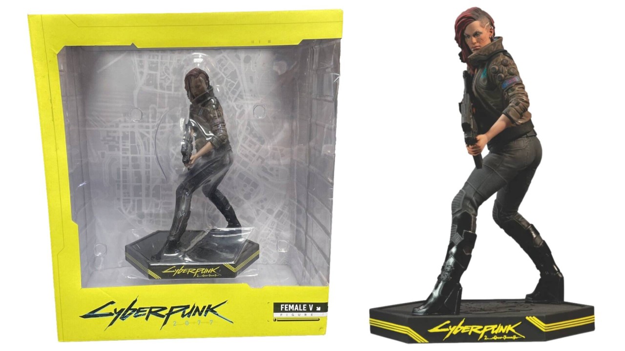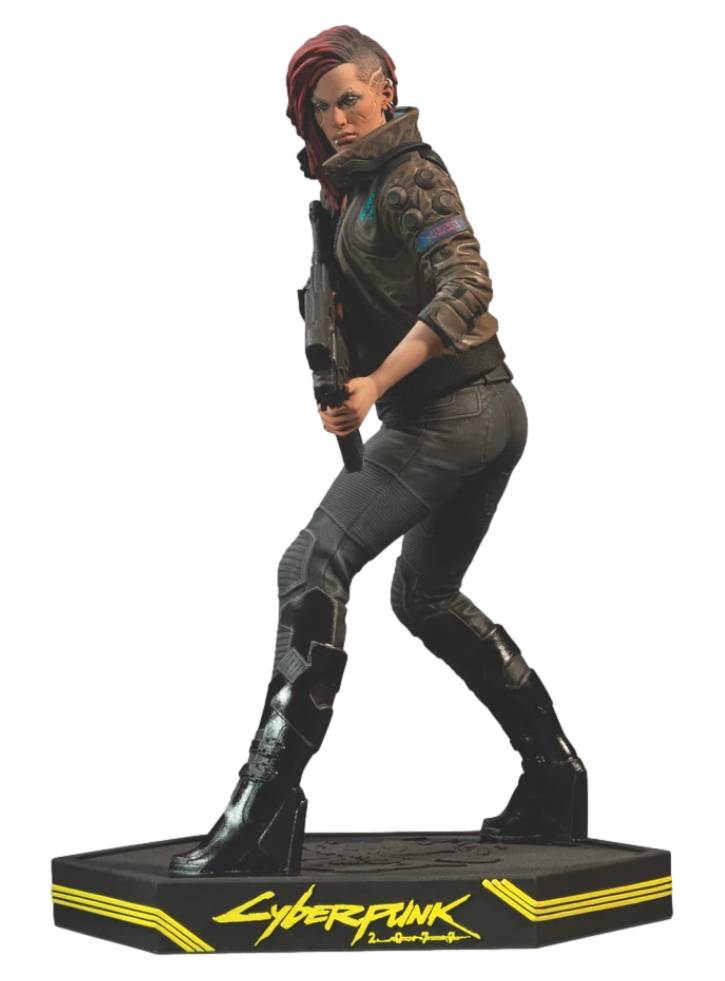 Această figurină ilustrează una dintre aspectele posibile ale lui V, protagonistul din Cyberpunk 2077, care poate fi personalizat complet de către jucător.