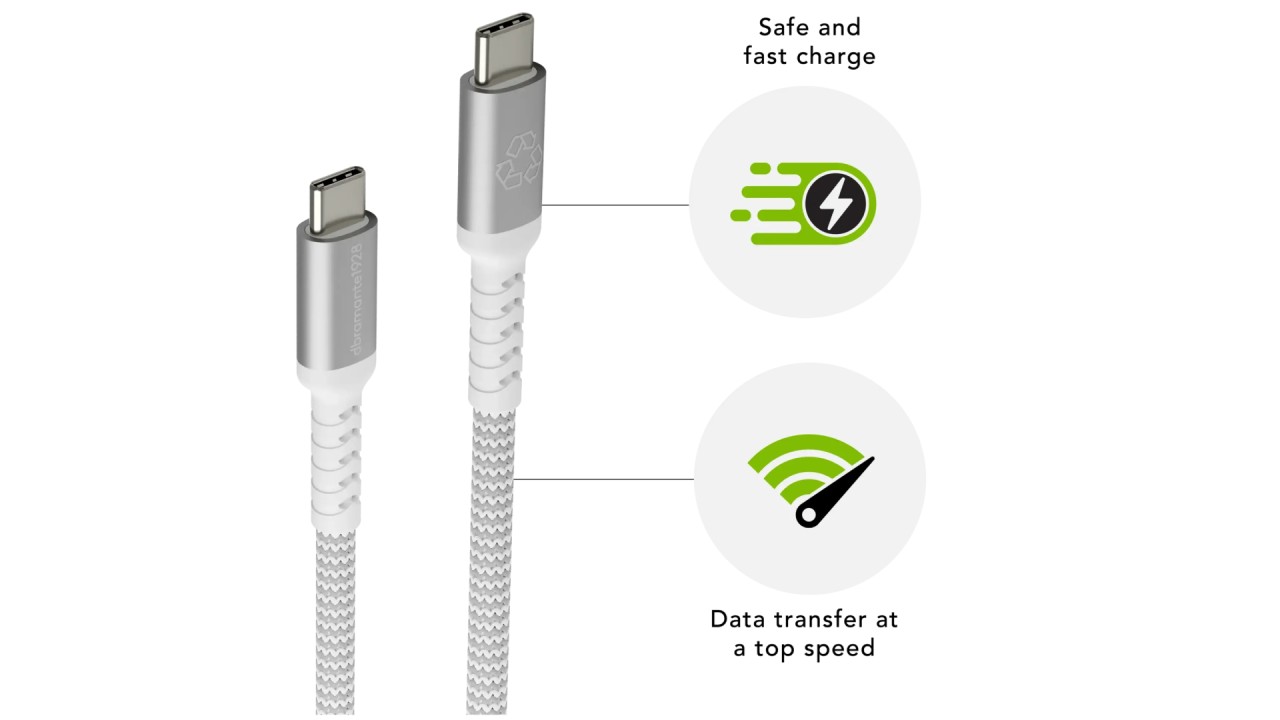 - Cablu împletit USB-C la USB-C de 1,2 m