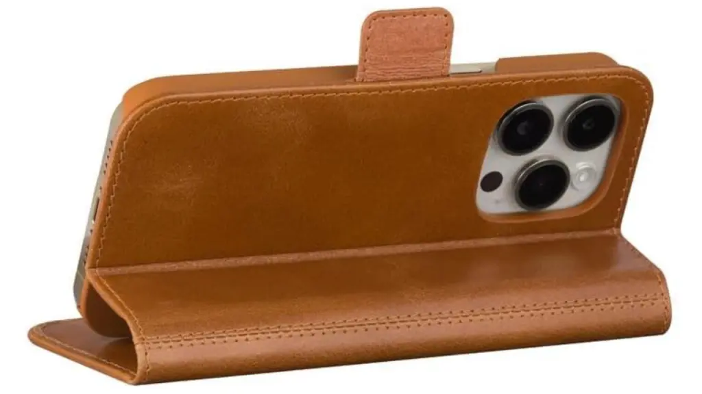 It is manufactured manually in full leather that develops a beautiful patina with use and has a foldable back for watching horizontal videos with free hands.