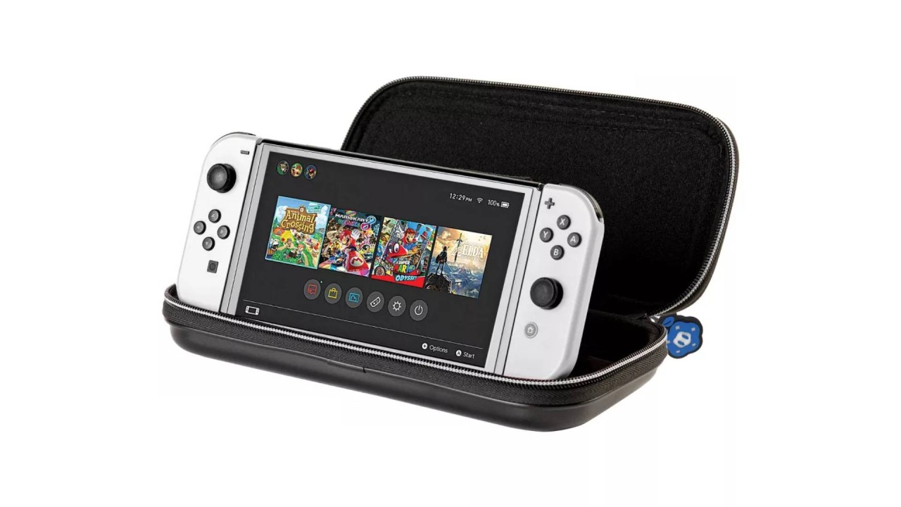 Carcasă rigidă pentru protecție maximă. Îți va păstra consola și controllerele Joy-Con în siguranță oriunde vei merge.