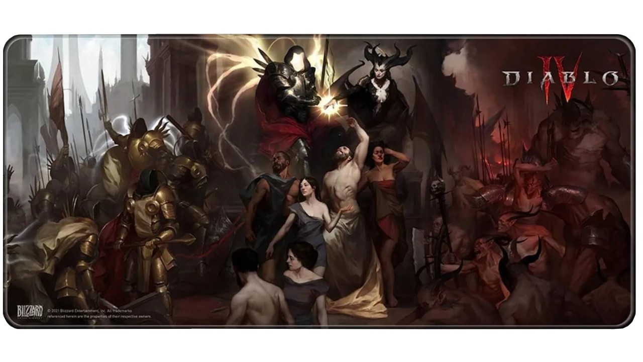 This gaming mousepad depicts the epic battle between Inarius and Lilith.