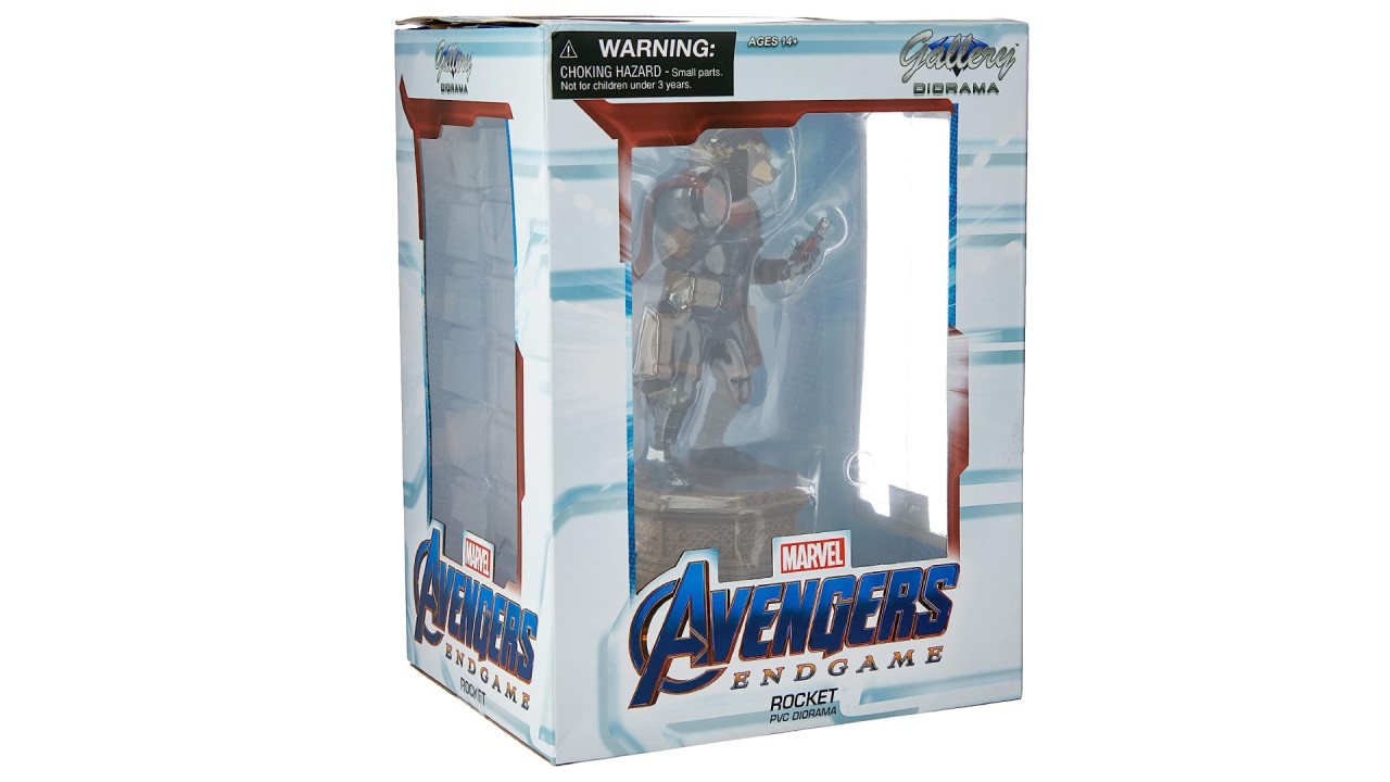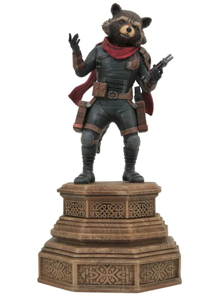 Bazat pe apariția sa în Avengers: Endgame, această sculptură a lui Rocket pe o bază de piedestal, este realizată din PVC de înaltă calitate și prezintă sculptură și aplicații de vopsea detaliate.