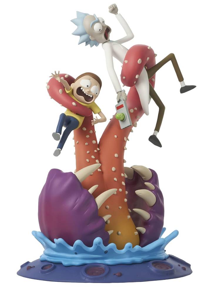 Ai grijă, Morty! În această primă piesă de colecție Rick & Morty de la Diamond Select Toys, Rick și nepotul său Morty sunt prinși în limba cu țepi a unei creaturi misterioase!