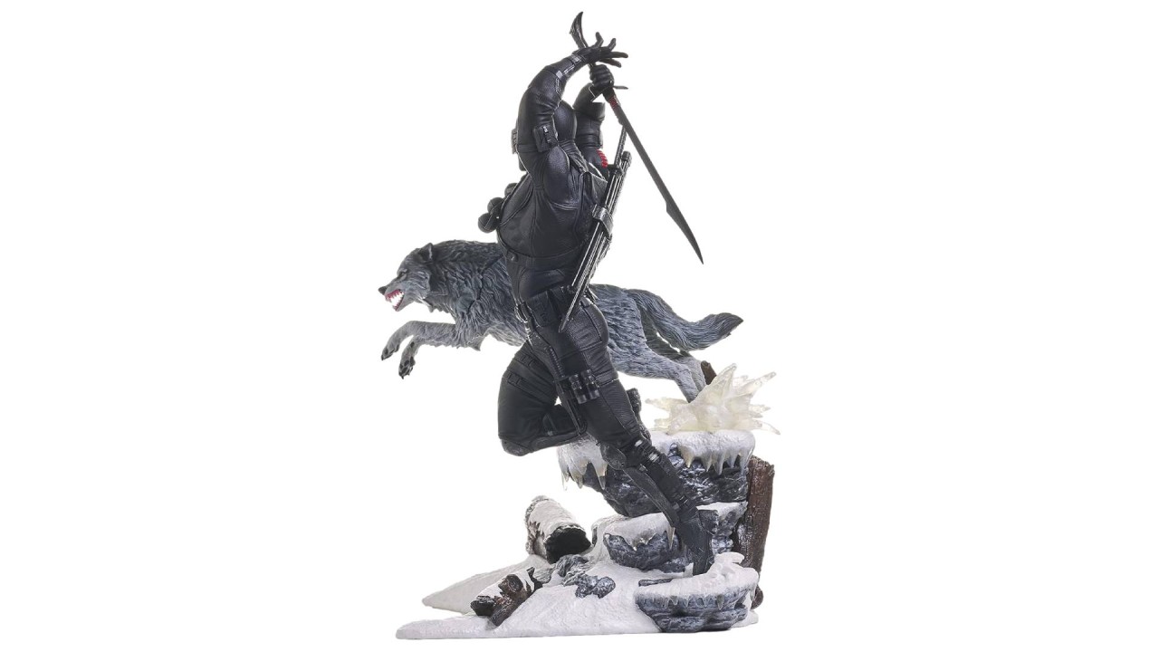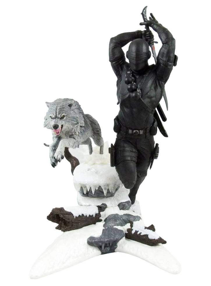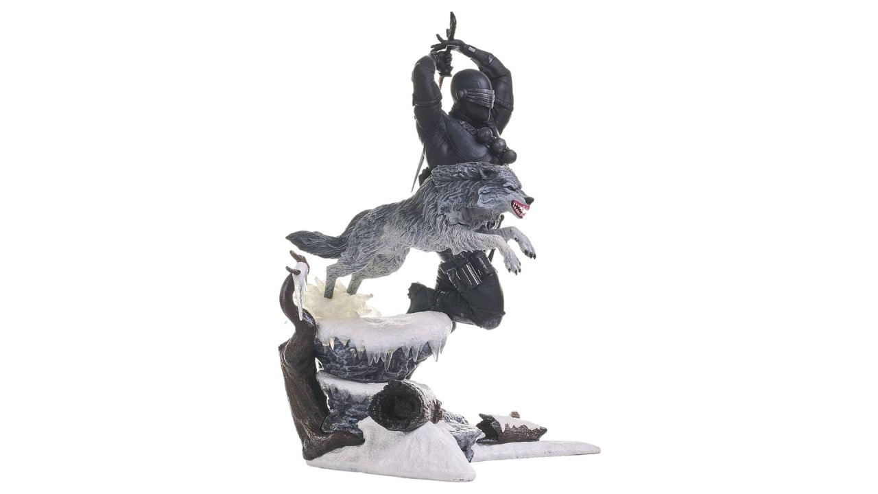 Flancat de tovarășul său lup Timber, Snake Eyes își mânuiește sabia sa caracteristică în timp ce își lansează atacul pe furiș.