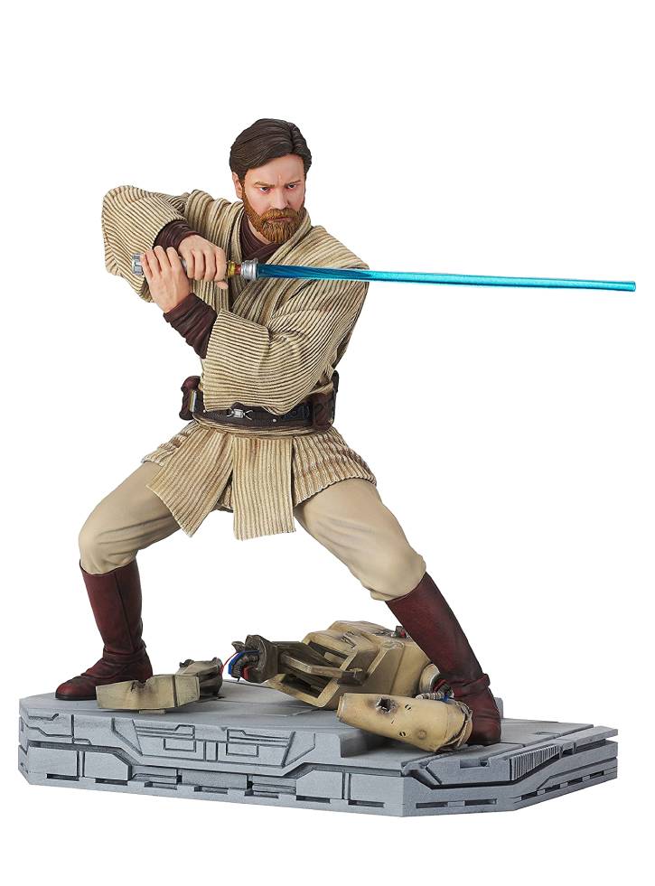 Obi-Wan Kenobi își mânuiește sabia laser în apărarea Republicii, această sculptură Milestones prezintă la bază părți de droizi de luptă tăiate în felii și îl arată pe Obi-Wan adoptând o poziție de luptă.