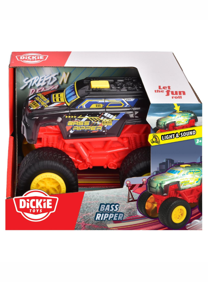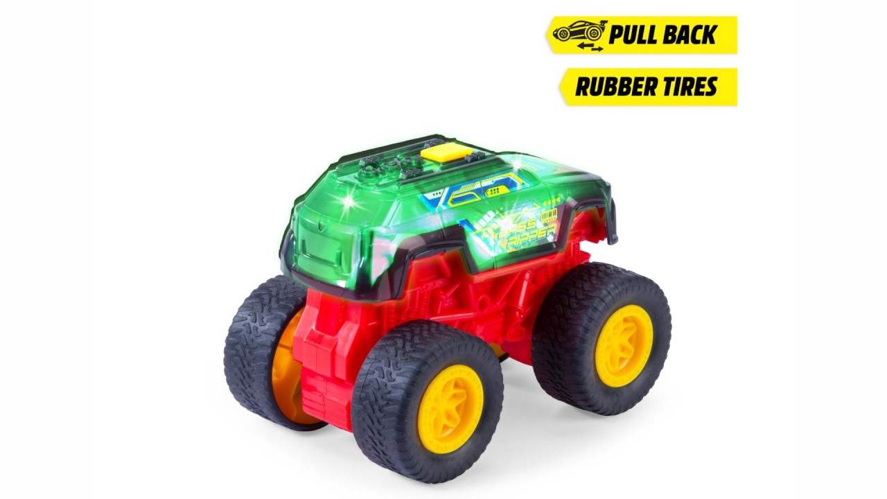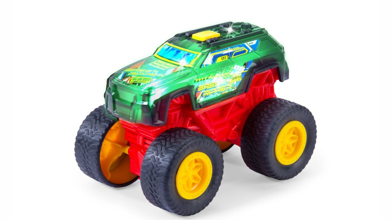 Dar nu doar designul său impresionează – camionul monstru de 17 cm lungime are de oferit și din punct de vedere acustic: la apăsarea unui buton, se declanșează un foc de artificii de zgomote de motor, ritmuri și muzică, însoțite de lumini LED schimbătoare!