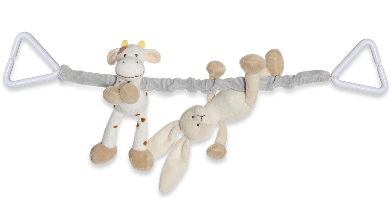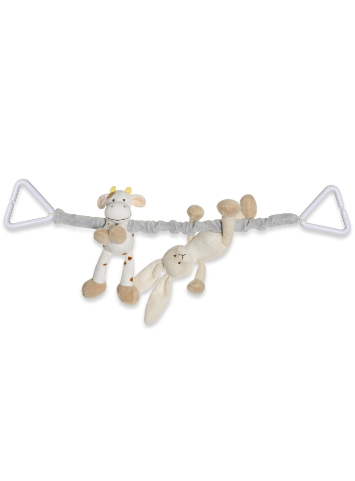Teddykompaniet Diinglisar Bunny and Cow Pram Rattle este un mare companion pentru copii.
