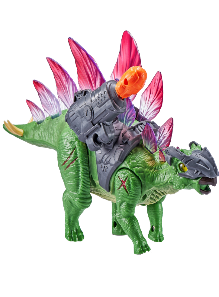 Acest feroce dinozaur blindat este pregătit să înfrunte toți adversarii cu armura sa detașabilă și lansatorul de proiectile.