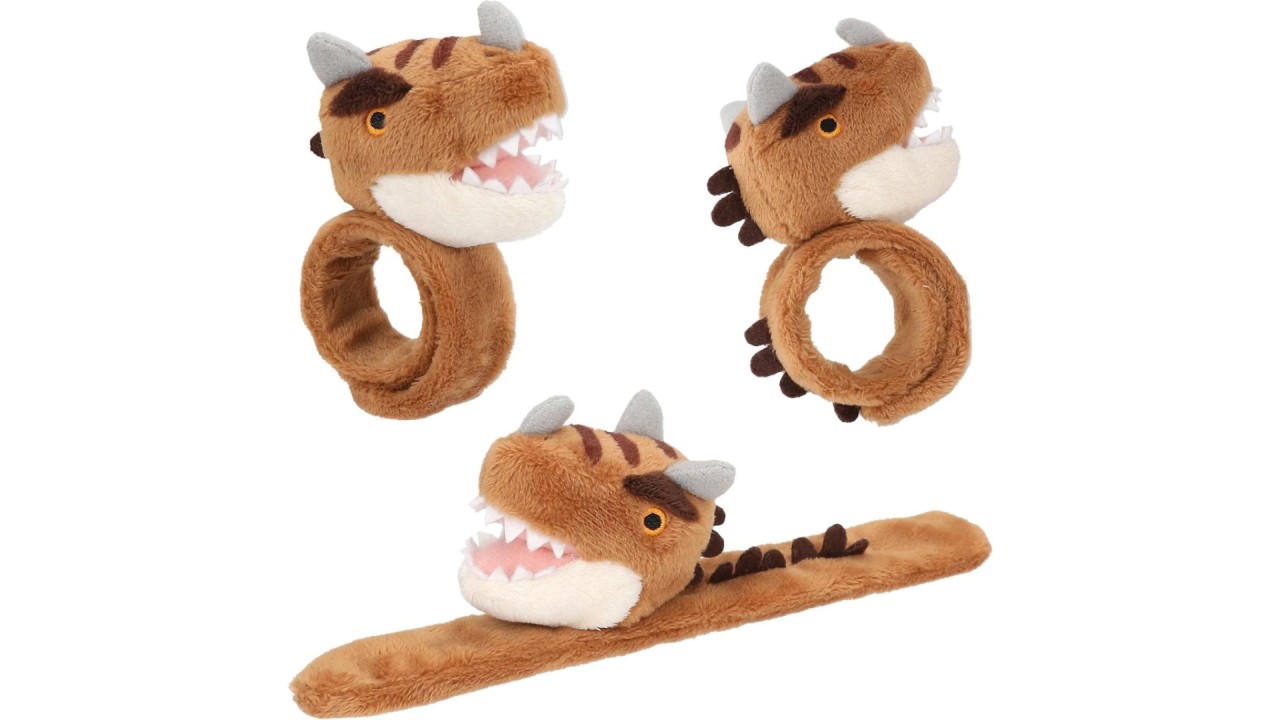 This unique toy combines the charm of a fluffy toy with the usefulness of a weak bracelet, all in a vibrant design inspired by the universe of dinosaurs.