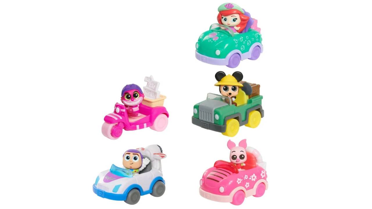 Vehiculele includ o colecție colorată de buggy-uri, mașini sport, jeep-uri și chiar o motocicletă cu dungi Cheshire Cat, care îi va face cu siguranță să zâmbească pe toți fanii jucăriilor Disney.