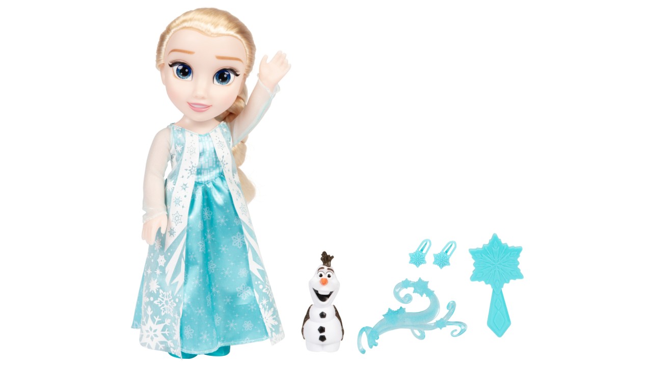 Setul include o păpușă Elsa, o rochie de păpușă, o pereche de pantofi de păpușă, o figurină Olaf, o brățară de braț Wind, 2 agrafe de păr pentru păpuși și o perie de păr.