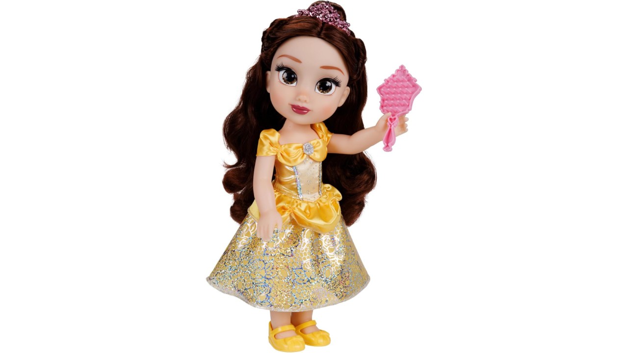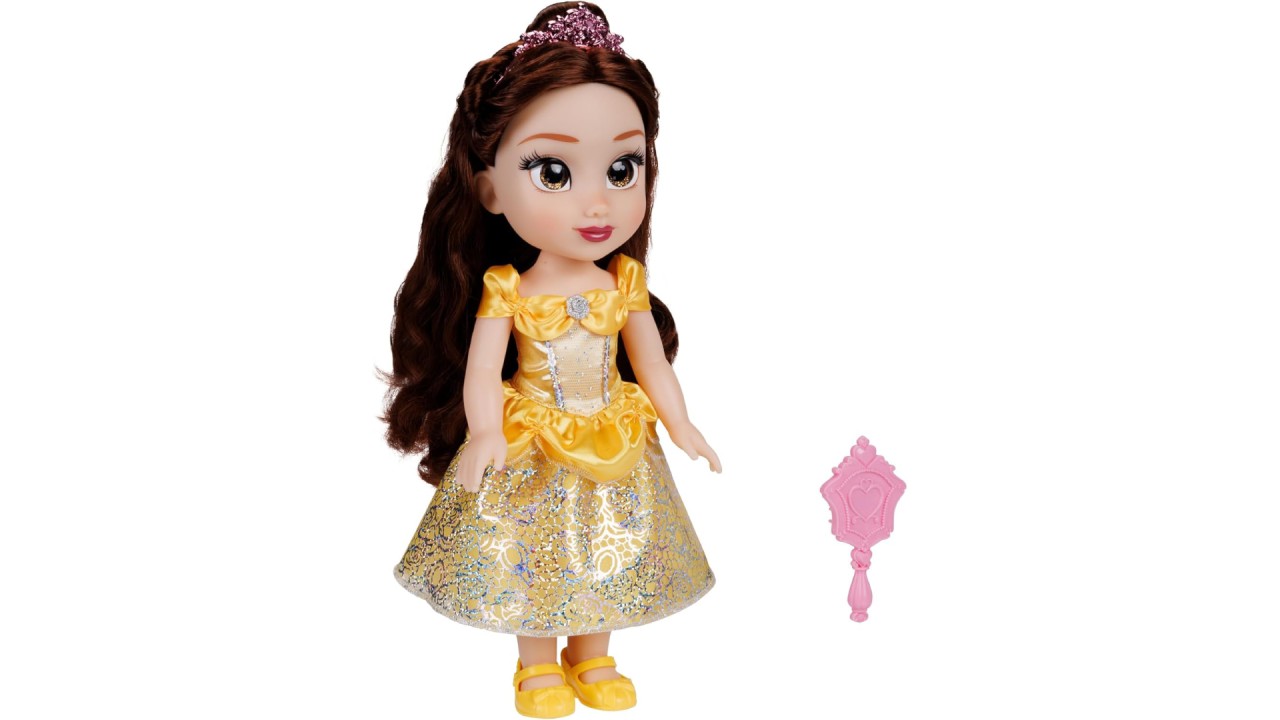 Belle is prettier than a rose and ready to join you for any activity, dressed in her iconic yellow dress with gorgeous glitter detailing featuring her friend Chip and roses.