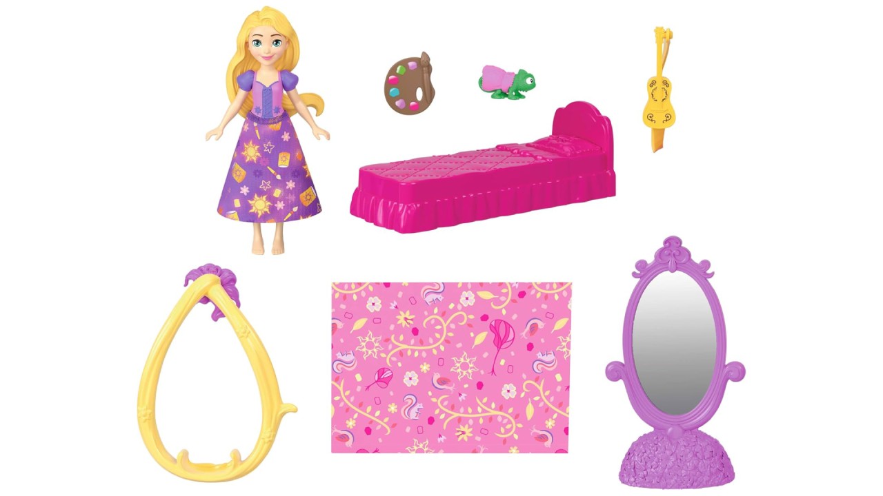 Setul include, de asemenea, adorabilul prieten al Rapunzel, Pascal, plus o ținută roz drăguță cu care să-l îmbraci.