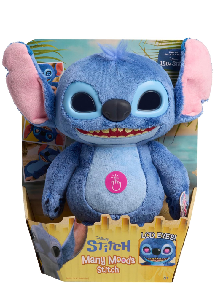 Cu o simplă apăsare a lăbuței, ochii lui Stitch se transformă și exprimă o varietate de emoții, de la entuziasmul jucăuș până la o privire blândă și plină de afecțiune.