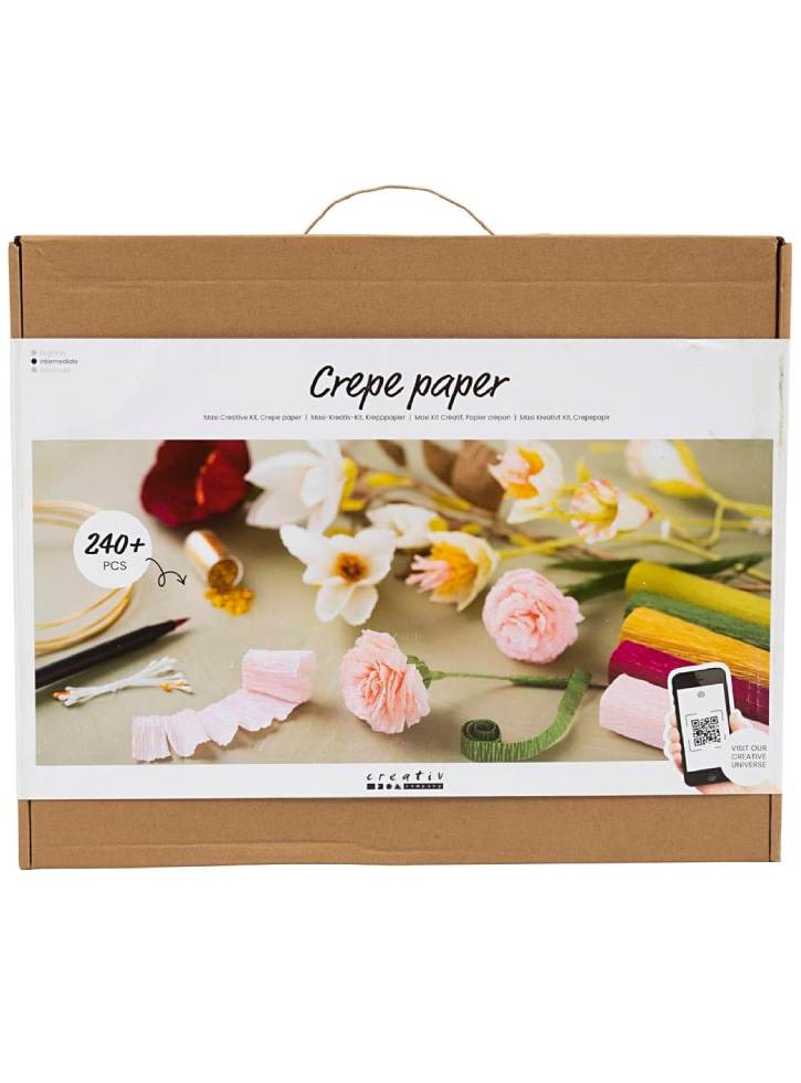 If you dream of creating a lot of flowers of crepe paper, this creative kit has everything you need.