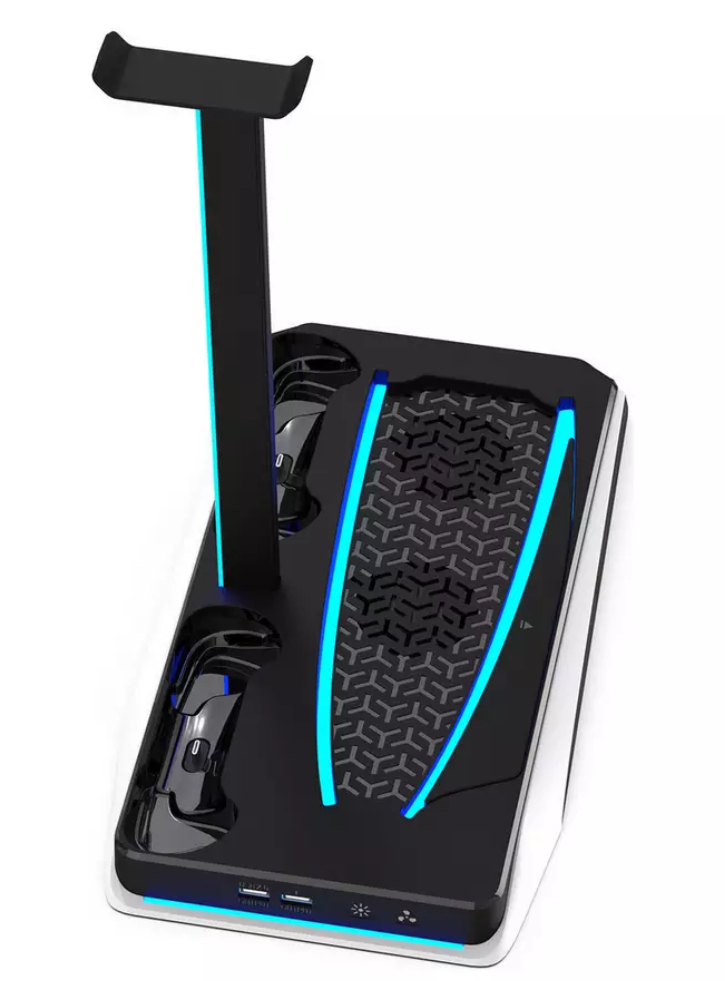 Acesta are o funcționalitate de descărcare și încărcare pentru 2 controlere DualSense.
