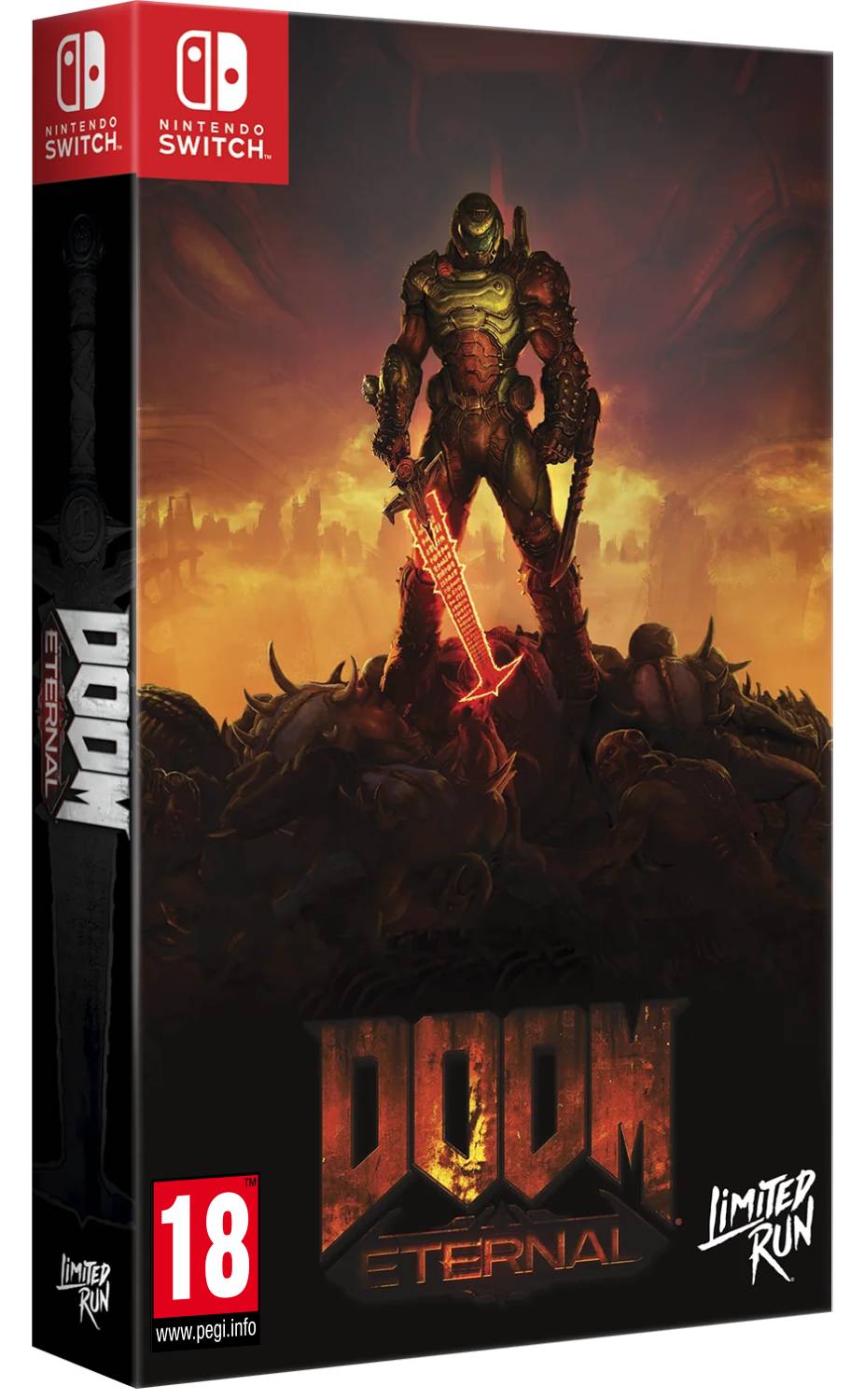 - jocul de bază Doom Eternal pentru Nintendo Switch, cu husă reversibilă.