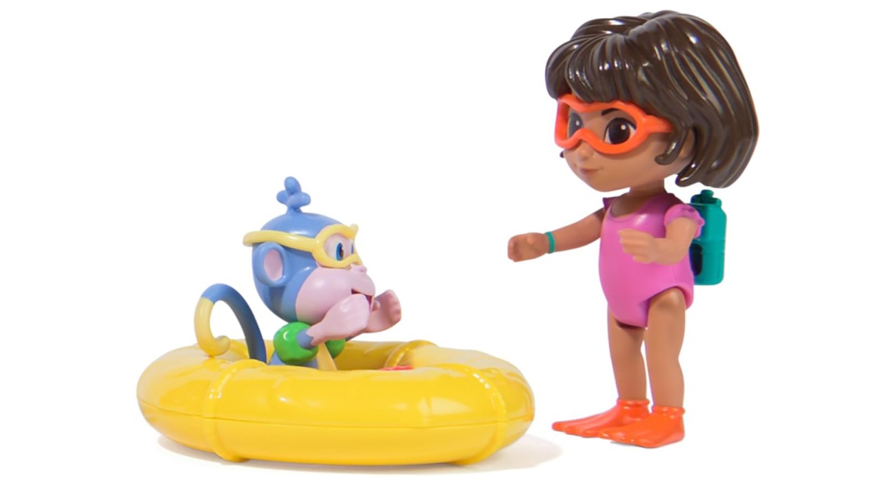 Dora are ochelari de protecție, o butelie de scufundări și labe de înot, iar Boots are ochelari de protecție și adorabile colaci verzi. Capetele și membrele lor mobile permit jocuri dinamice de rol, deoarece pot sta în picioare sau așezate.