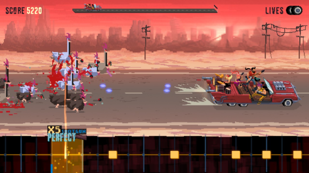 Double Kick Heroes amestecă un shoot'em up cu un joc de ritm.