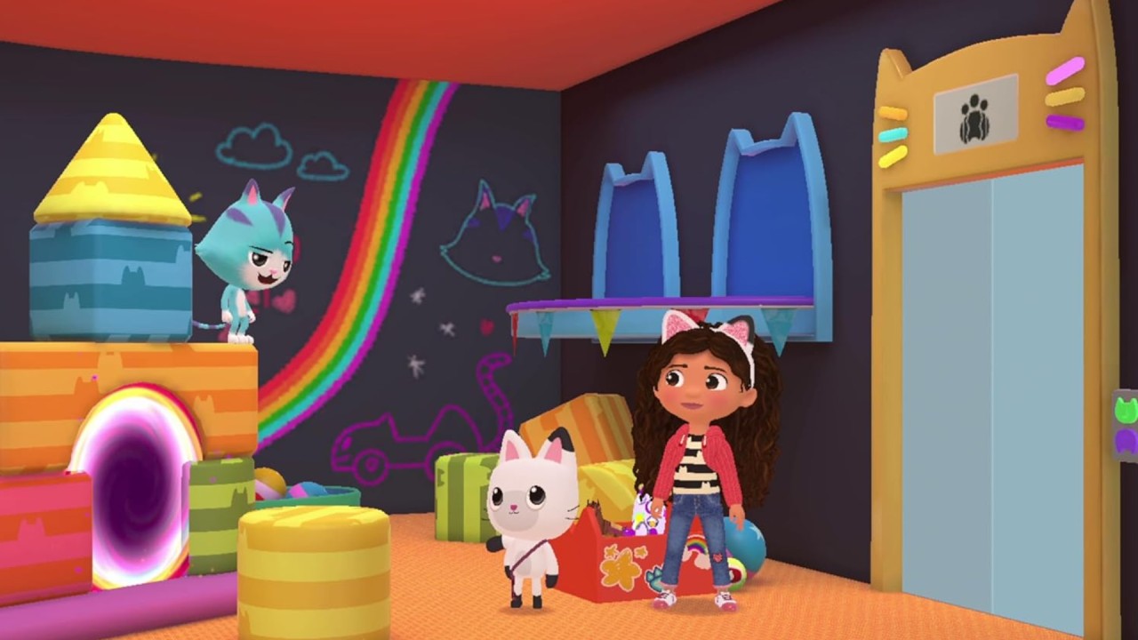 Mergi acolo unde te duce imaginația: aruncă-te în activități distractive și minijocuri în timp ce explorezi casa de păpuși a lui Gabby.