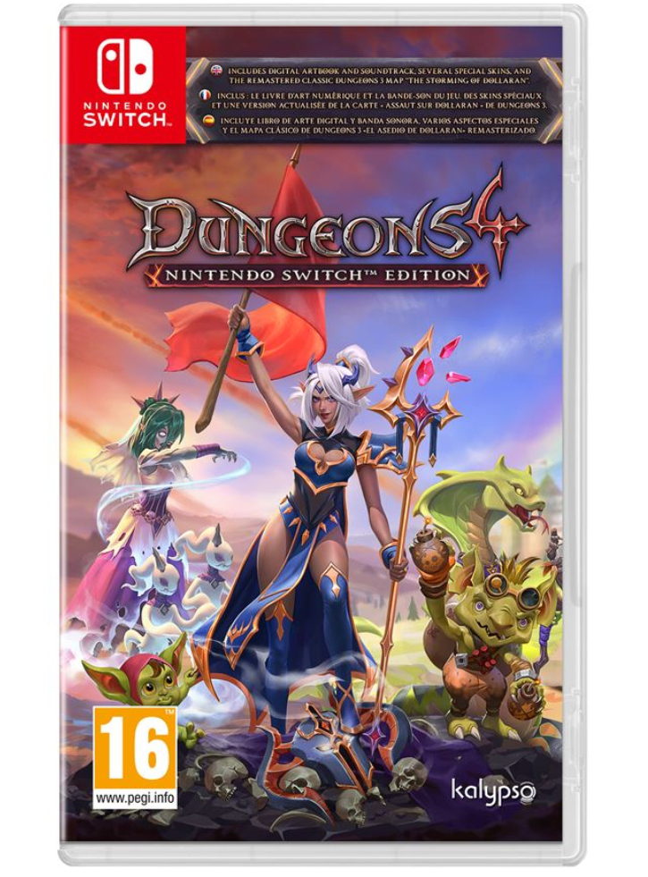 Caracteristici: - Follow the Evil Way: Dungeons 4 Nintendo Switch conține 20 de misiuni complet vocile (aruncați o monedă pentru Naratorul dvs.) și delicios de malefice, precum și mai multe hărți skirmish pentru cei care caută o provocare.