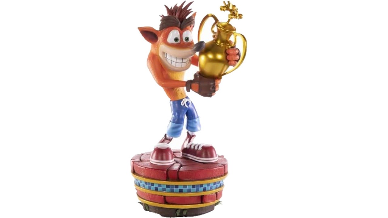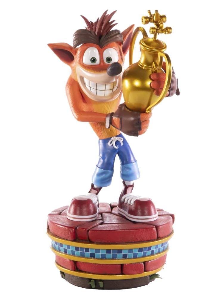 Conceptul pentru această statuie se bazează pe logo-ul Crash Team Racing Nitro-Fueled din ecranul principal al jocului, unde Crash ține trofeul în mână.