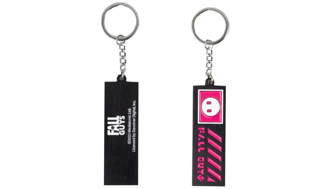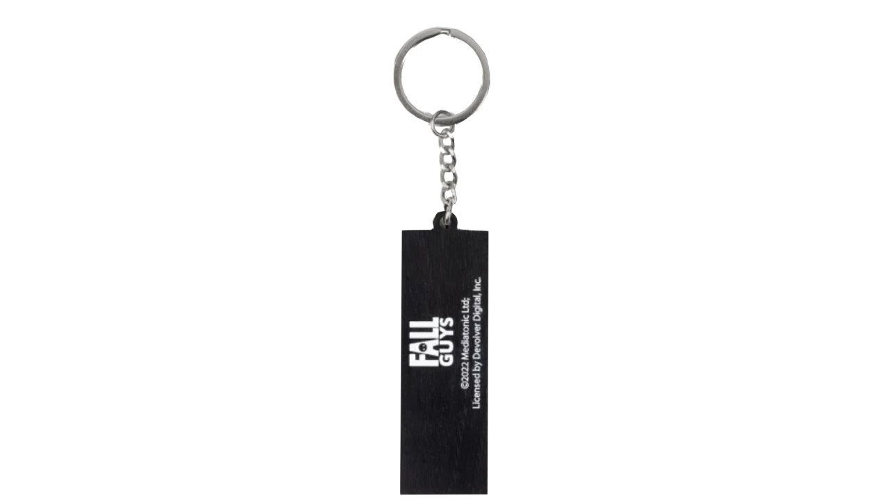 Brelocul FallGuys este realizat 100% din metal reciclat, care prezintă placa frontală cu sigla FallGuys.