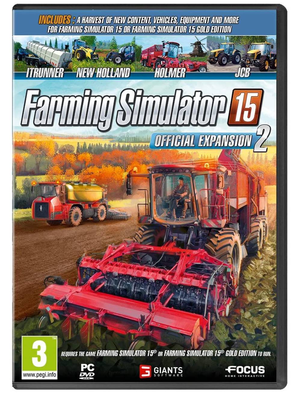 - Farming Simulator 15 Official Expansion 2 reuneste toate DLC-urile lansate pana acum, ofera un numar incredibil de marci noi si adauga peste 50 de vehicule si echipamente in Farming Simulator 15