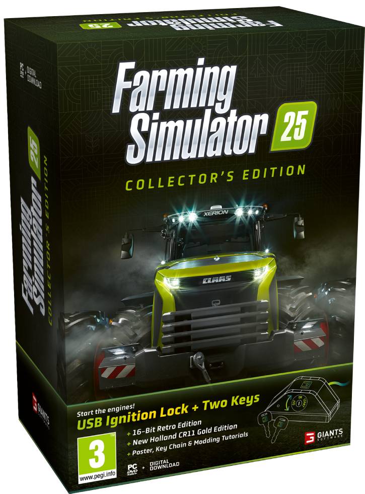 Farming Simulator 25 Collector's Edition pentru PC include: - Jocul de baza Farming Simulator 25 - Continut bonus: Pack-ul MacDon
