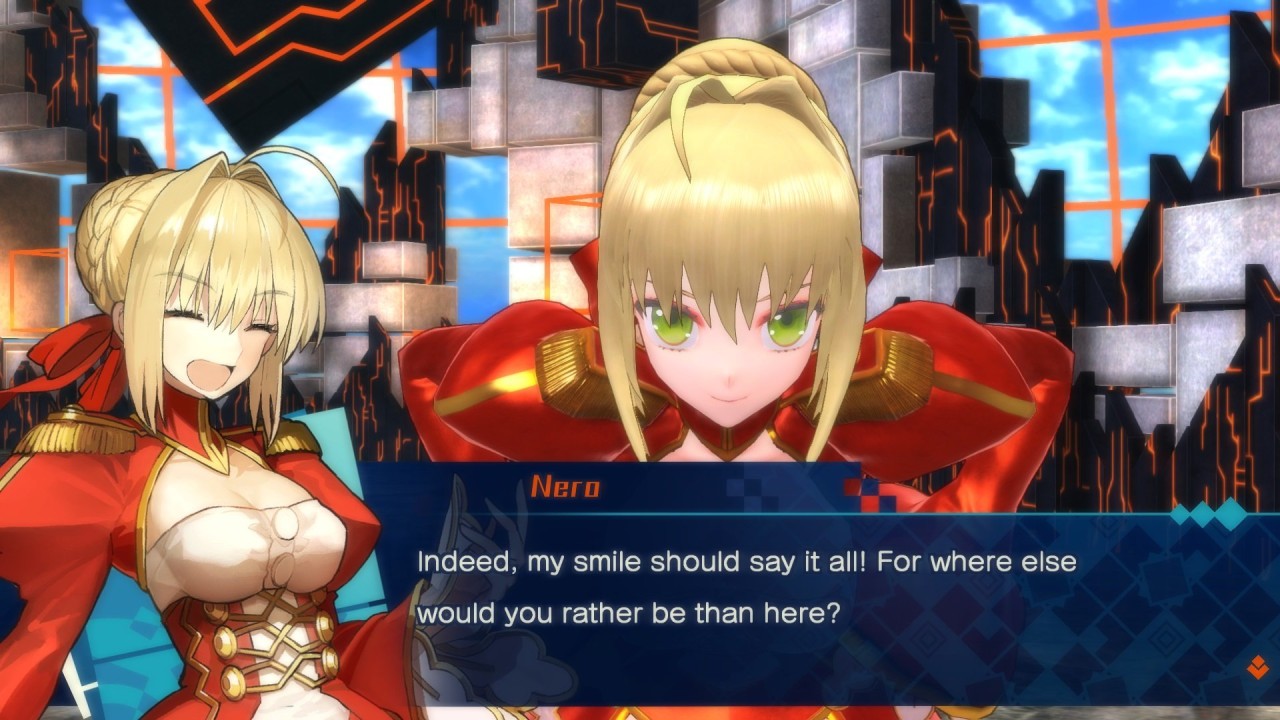 Caracteristici: - Nu doar servitorii Fate/EXTRA, ci și personaje din Fate/stay night, Fate/Apocrypha, Fate/Grand Order și alte continuități Fate își fac apariția aici