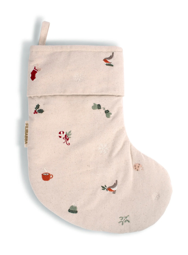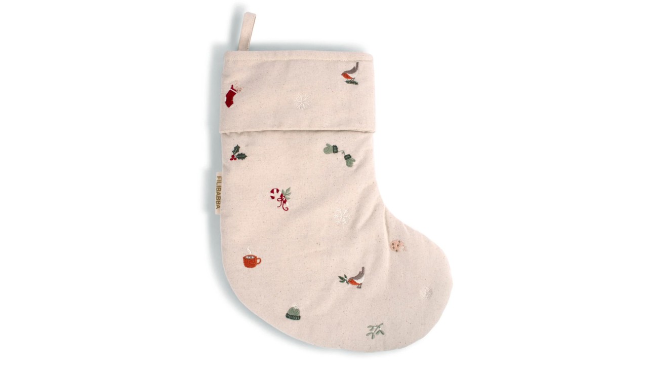 Acest șoset brodat Wonderful Winter de la Filibabba este o alegere fermecătoare pentru decorarea casei în sezonul rece.