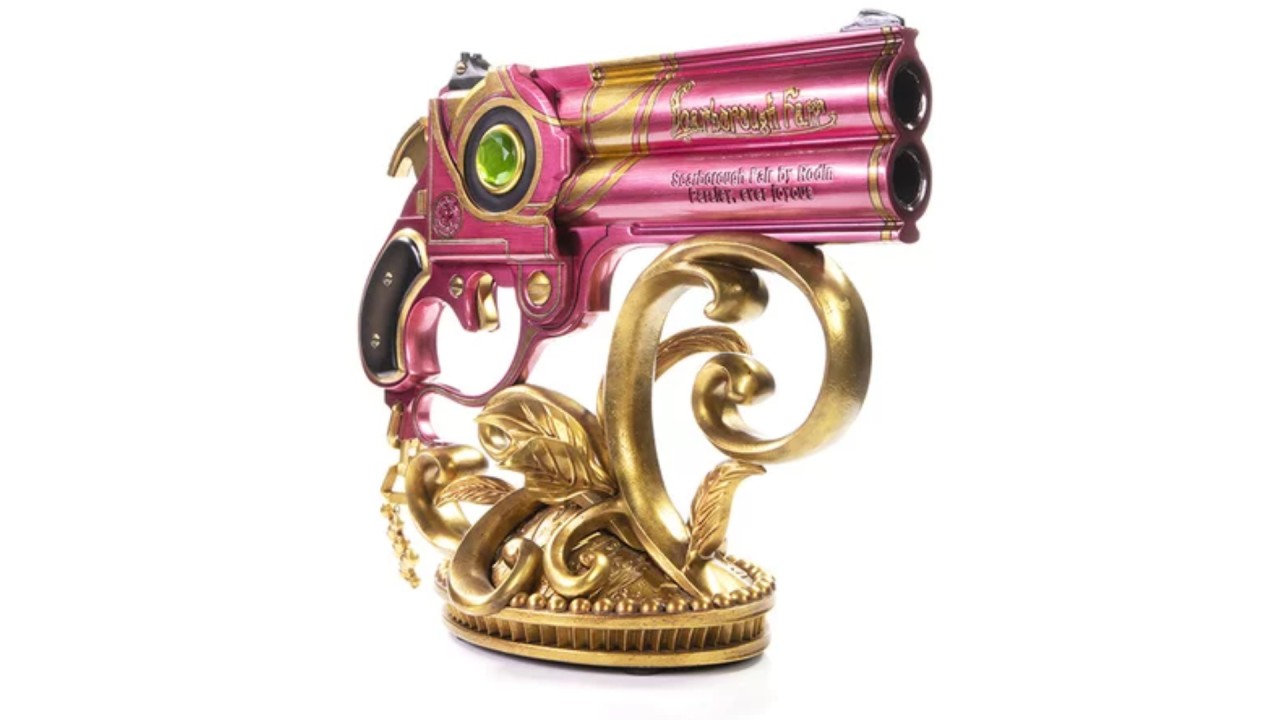 Designul bazei este inspirat de stilul baroc și decorul barului lui Rodin, iar baza în sine are un finisaj auriu metalic, completând detaliile aurii și aspectul metalic al pistoalelor.