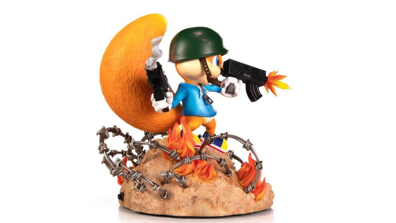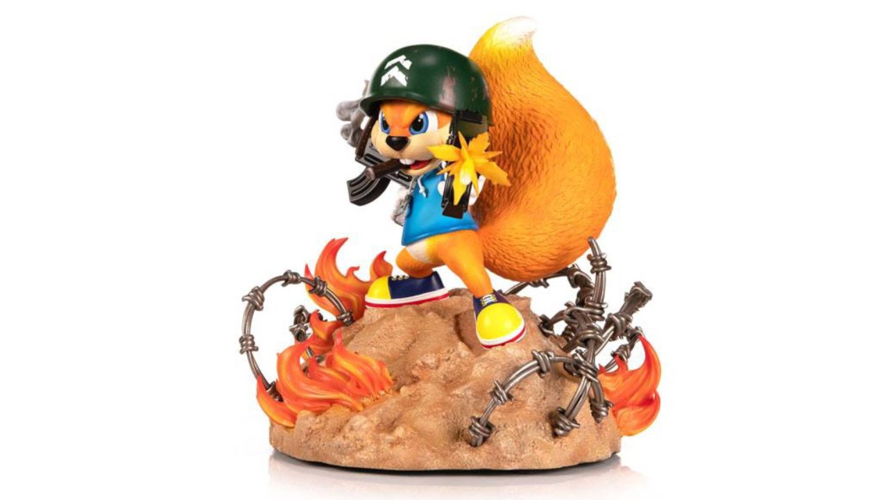The highly detailed Conker statue is inspired by the eighth chapter of the game, "It's War", where Conker is taken to the beachhead of the war-torn Tediz base.