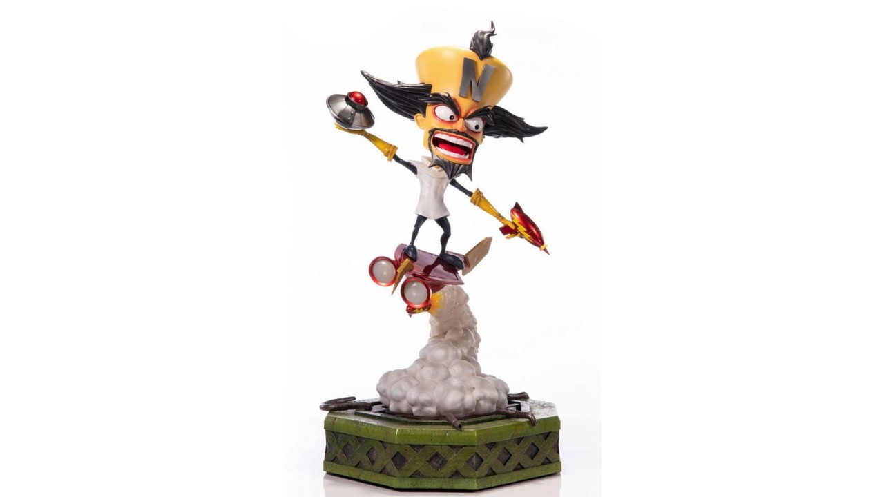 Și, la fel ca în joc, savantul nebun are și el pistolul blaster într-o mână și o mină în cealaltă, ambele fiind armele sale preferate împotriva lui Crash în cel de-al treilea episod.
