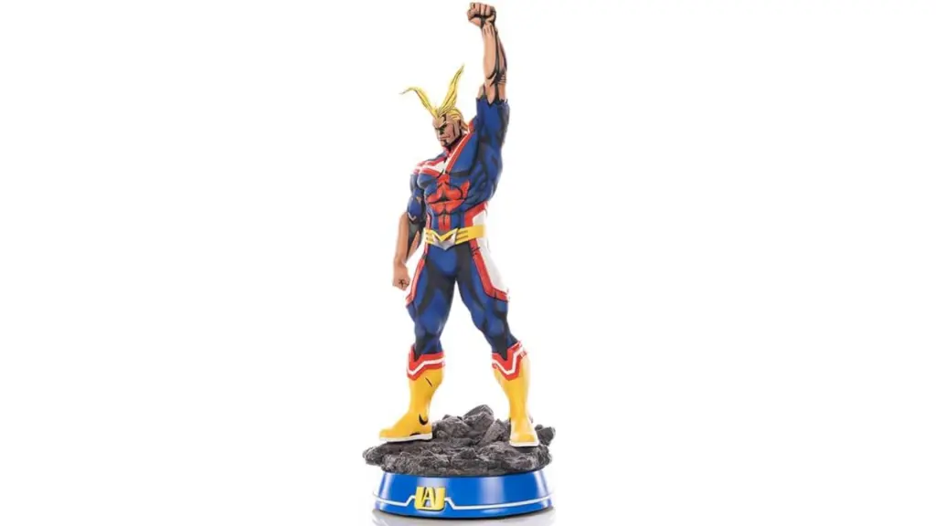 În această statuie glorioasă din rășină, All Might ține pumnul ridicat în aer. Fanii anime-ului vor recunoaște imediat această poziție iconică de victorie.