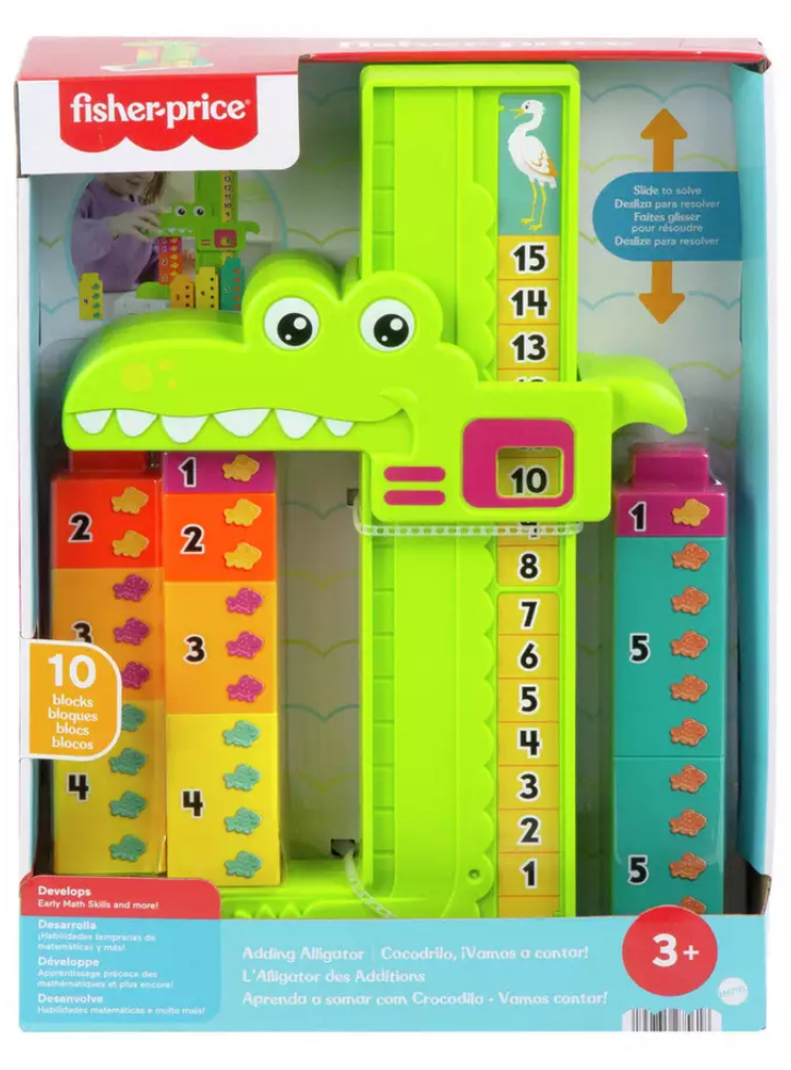 Acest prietenos crocodil interactiv ii ajuta pe copii sa invete numerele, precum si concepte de baza precum adunarea si scaderea, prin joaca practica cu blocuri de stivuire numerotate.