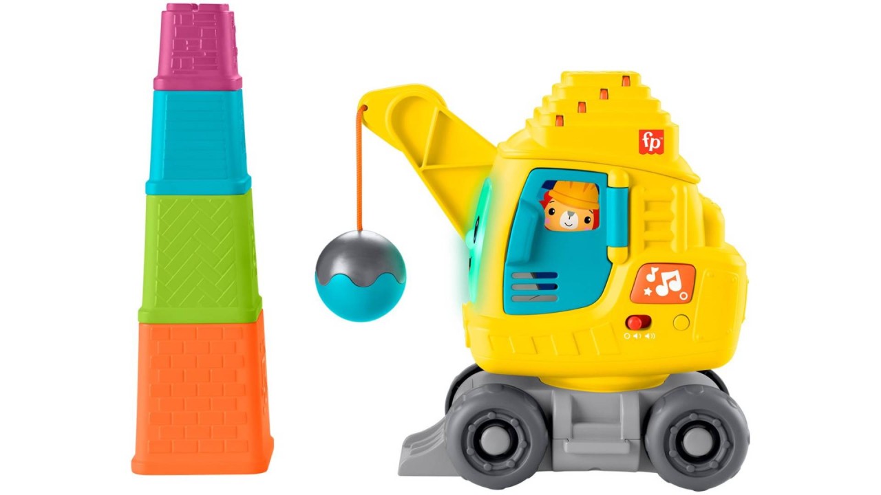 The fun will pile up for babies and toddlers with the Fisher-Price Count and Stack Crane construction toy!