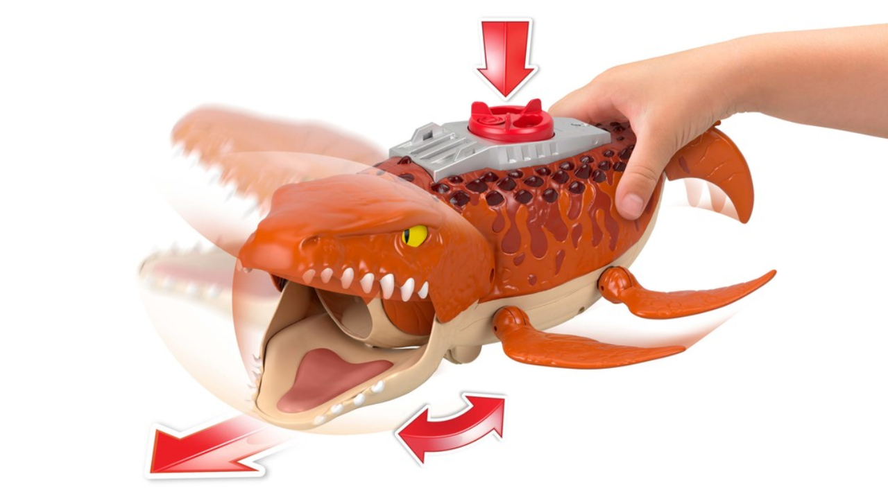 Get ready for intense aquatic aquatic action Aquachomp Mosasaurus from Fisher-Price, inspired by Jurassic World Rebirth!