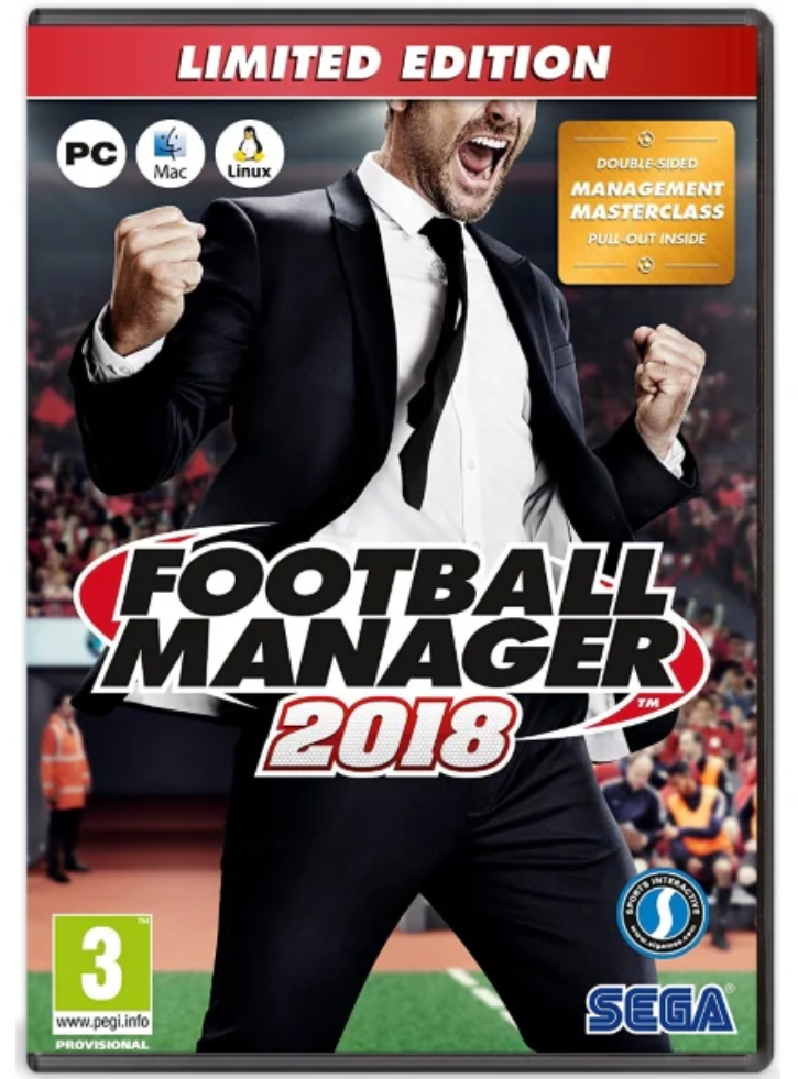 Urmează-ți rapid drumul spre istoria fotbalului cu Football Manager 2018 Limited Edition. Un extras "Management Masterclass" pe două fețe te conduce prin primii pași în banca de rezerve digitală și te pregătește pentru un succes pe termen lung.