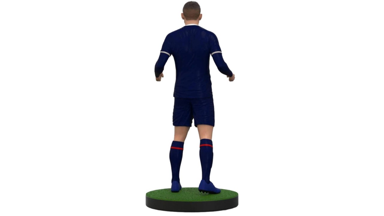 Vă puteți aștepta ca statuia să poarte echipamentul clasic de acasă PSG cuplat cu ghete de fotbal negre.Este fixat pe o bază circulară verde, reflectând gazonul de la Le Parc des Princes.