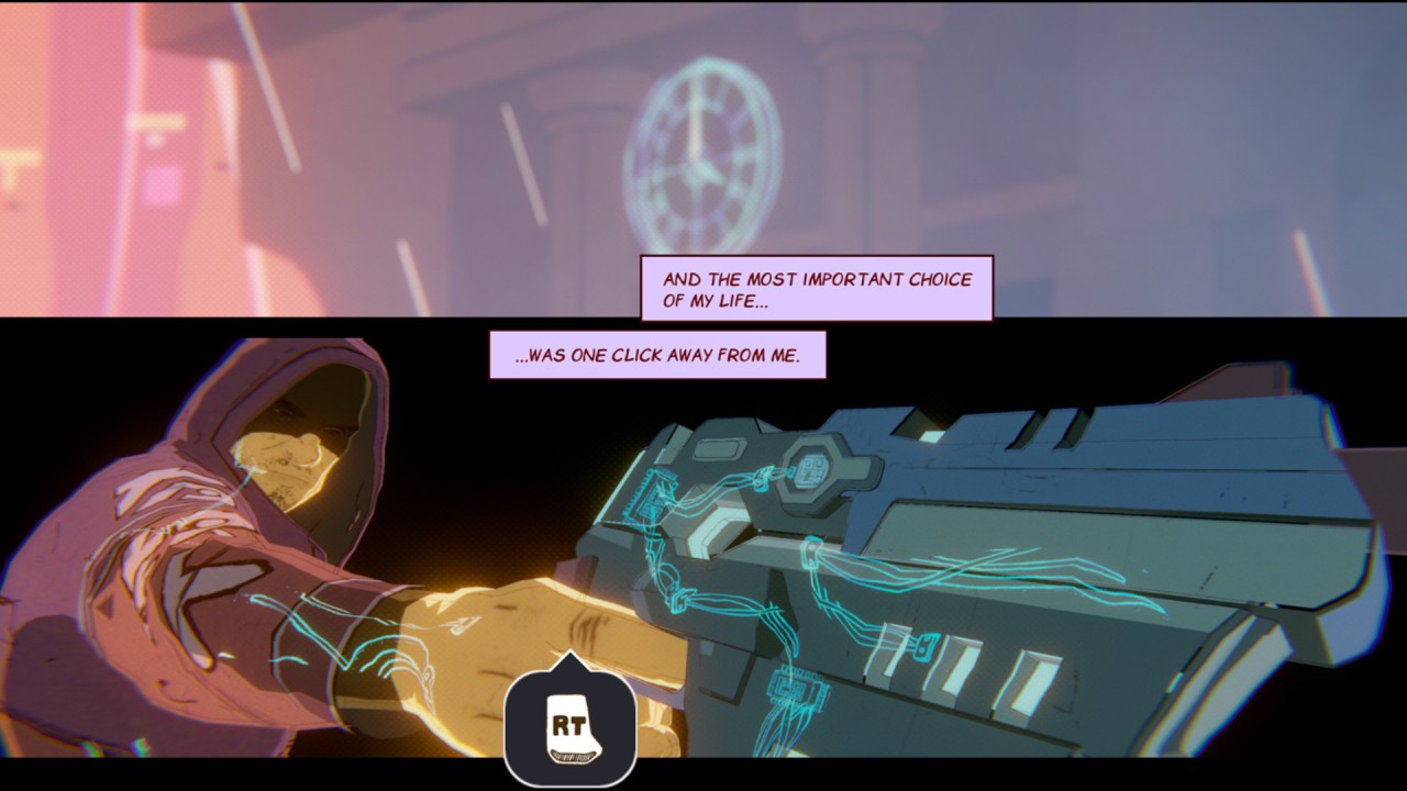 Foreclosed combines the playability of video games with the sleek visual aesthetics of comics. Everything from gameplay to cinematics is experienced within the stylistic framework of a graphic novel.