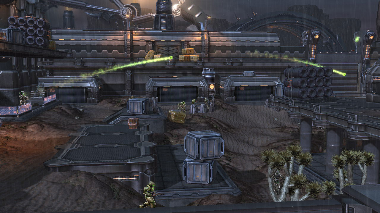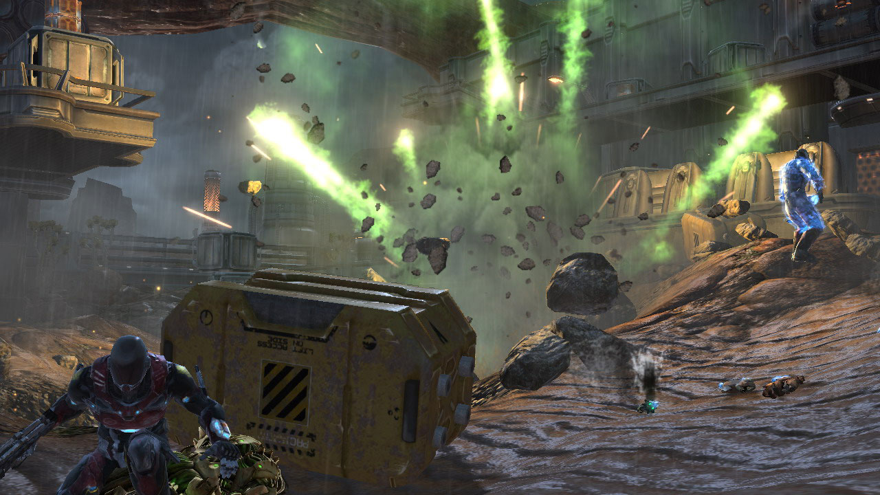 Jucătorii sunt echipați cu un arsenal de arme futuriste pentru a remodela strategic mediul înconjurător din mers.