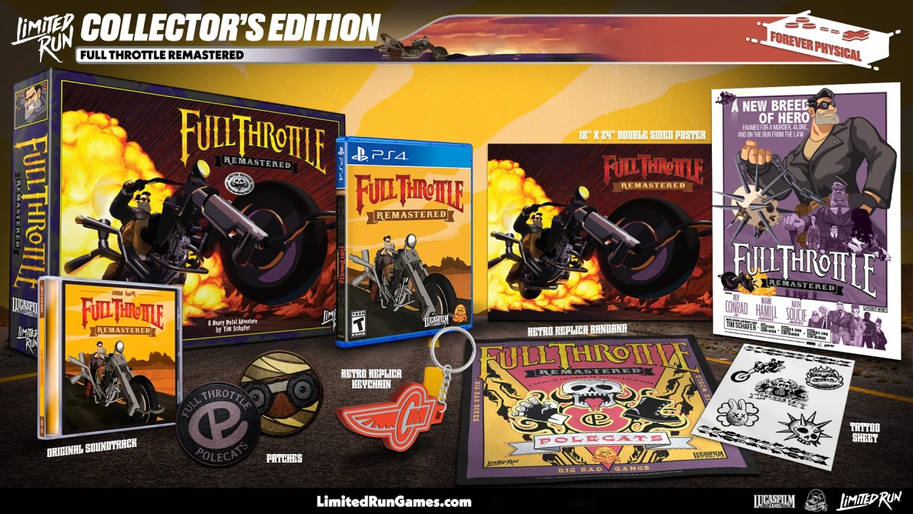 Acum, peste 20 de ani mai târziu, Full Throttle este din nou într-o ediție remasterizată cu toate noile lucrări de artă desenate manual și 3D de înaltă rezoluție, cu audio și muzică remasterizate.