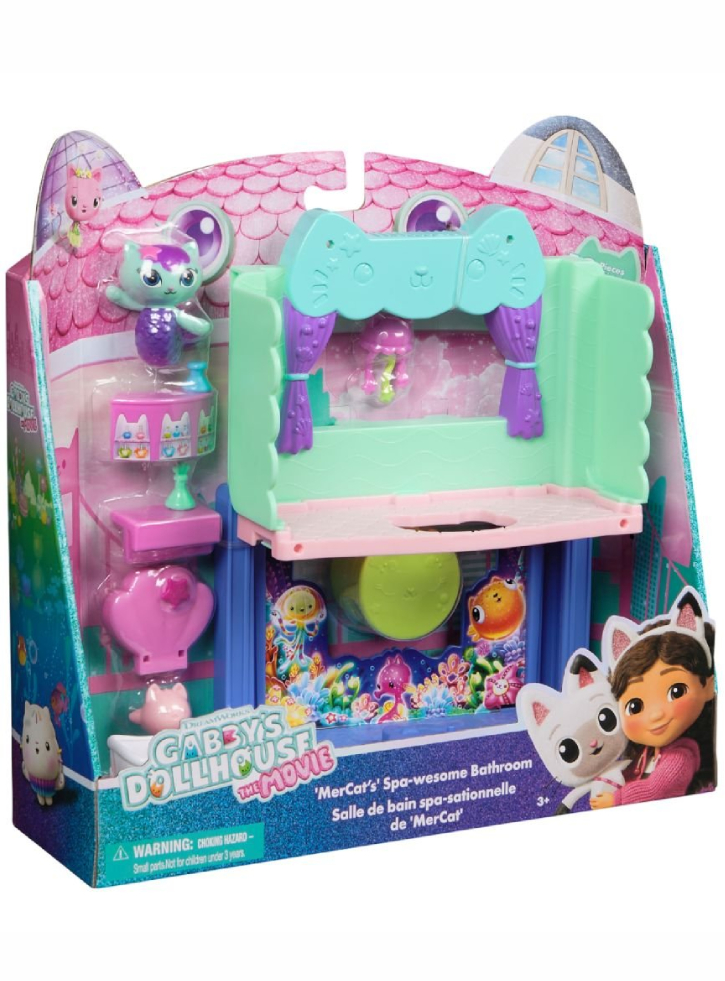 Aceste jucării sunt un cadou minunat care le permite copiilor să retrăiască momentele lor preferate din film și să creeze alte aventuri din Gabbys Dollhouse cu jucării pentru fetițe, cum ar fi accesorii și mobilier pentru casă, pisicile lor miaunătoare și jucăriile minunate cu sirene, cu care se vor bucura de ore întregi de distracție (vândute separat).