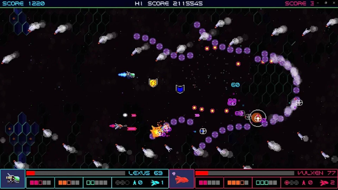 Alege din 3 nave unice, fiecare cu puncte forte și puncte slabe echilibrate pentru a se potrivi cu stilul tău de joc preferat, apoi lansează-te în acțiunea cu derulare laterală împotriva roiurilor de răufăcători asemănători unor insecte, gata să-ți scurteze misiunea.