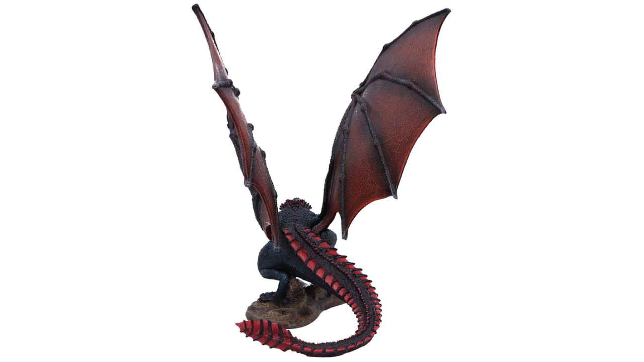 Această statuetă din rășină pictată manual și foarte detaliată îl surprinde pe Drogon într-o postură dominantă - aripi ridicate, gură deschisă, gata să răcnească sau să-și dezlănțuie mânia înflăcărată.