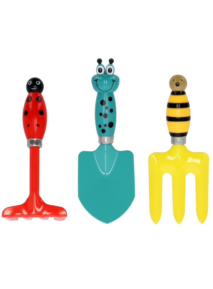 Grebla roșie pentru gărgărițe, lopata broască turcoaz și furca galbenă pentru plantat albine îi atrag chiar și pe cei mai mici copii în grădină, dar le pot lua cu ei și la locul de joacă.