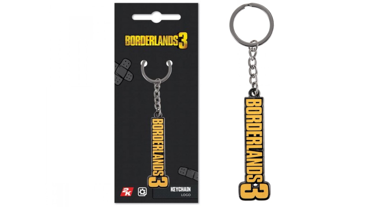 Brelocul are logo-ul Borderlands 3 evidentiat pe acesta.