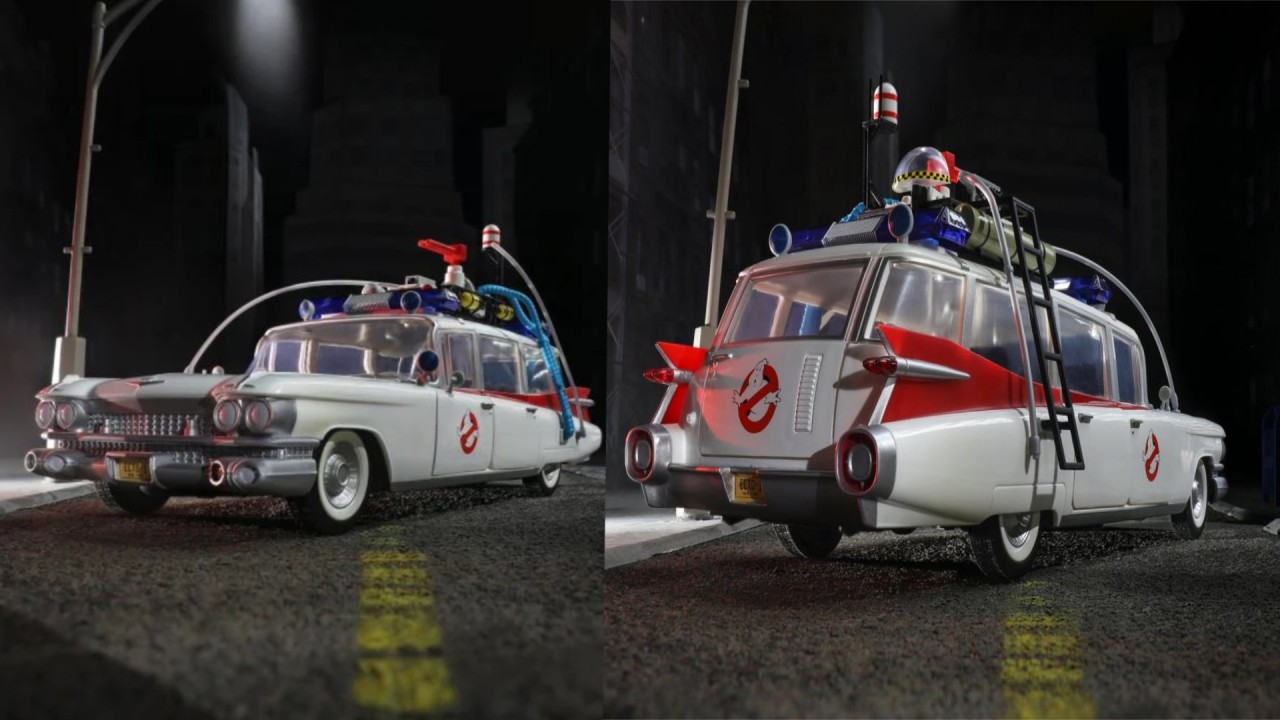 Ecto-1 este replicat cu atenție, având toate detaliile iconice care îl fac ușor de recunoscut, de la designul său distinctiv de ambulanță modificată, la echipamentele de vânătoare de fantome montate pe acoperiș.
